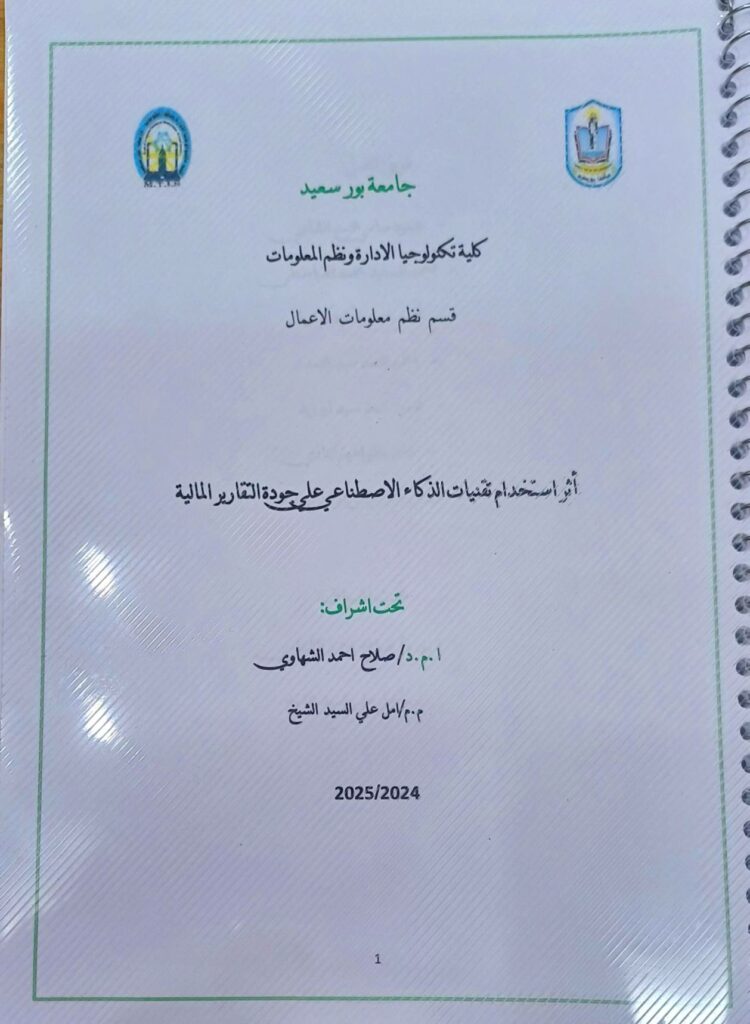 عنوان المشروع : اثر استخدام تقنيات الذكاء الاصطناعي على جودة التقارير المالية